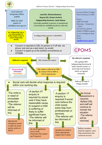 At Byfleet Primary, we have a number of policies and procedures that contribute towards our safeguarding commitment. All staff (including supply staff, volunteers and governors) must ensure that they are aware of these procedures. Our safeguarding and child protection policies can be found on our website (see below) or can be requested via the school office.